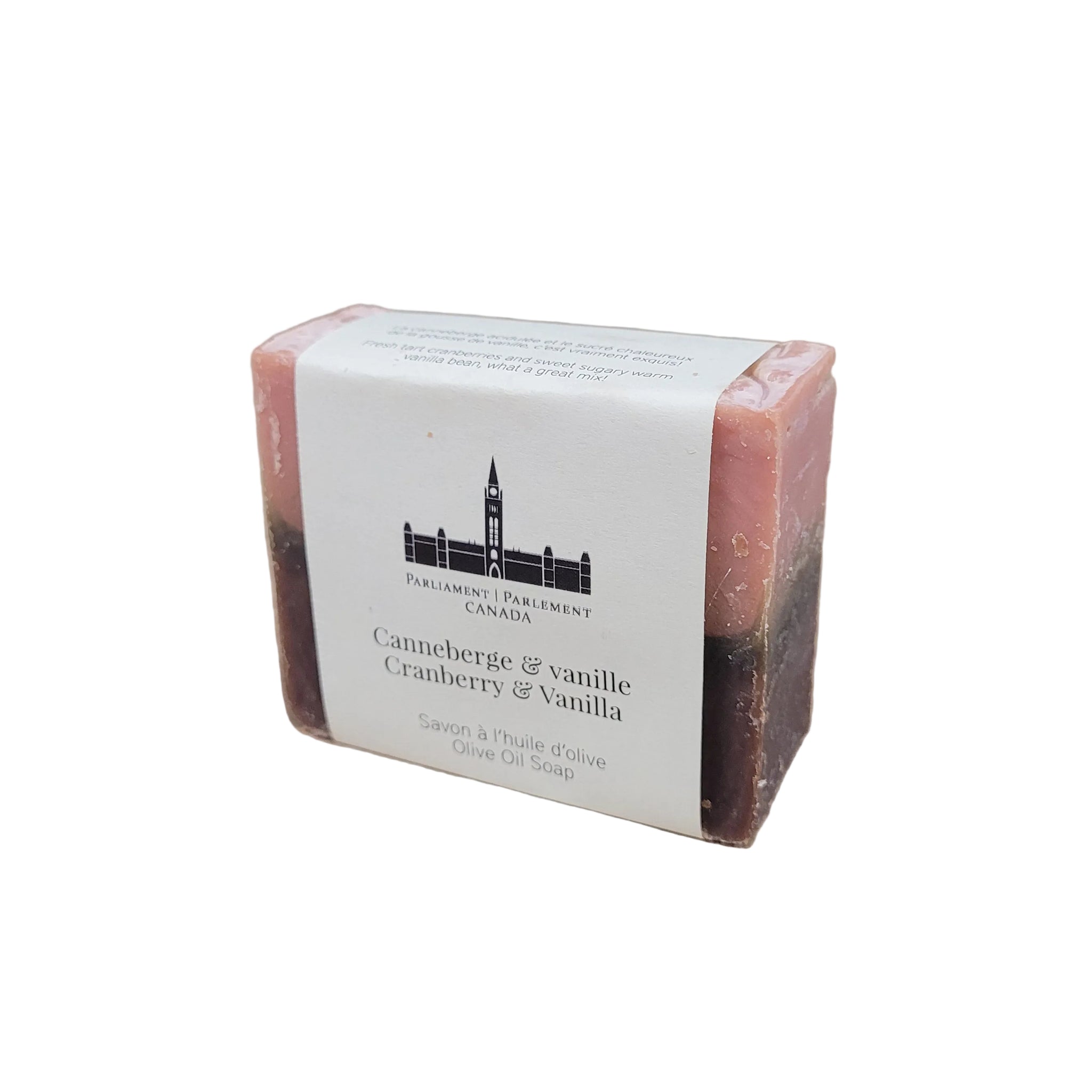 *Cranberry and vanilla: Oleaeuropaea (olive) oil, aqua, cocosnucifera (coconut) oil, glycine soja (soybean) oil (non GMO), theobromacacao (cocoa) seed butter, sodium hydroxide, ricinus communis (castor) seed oil, parfum, titanium dioxide. mica.