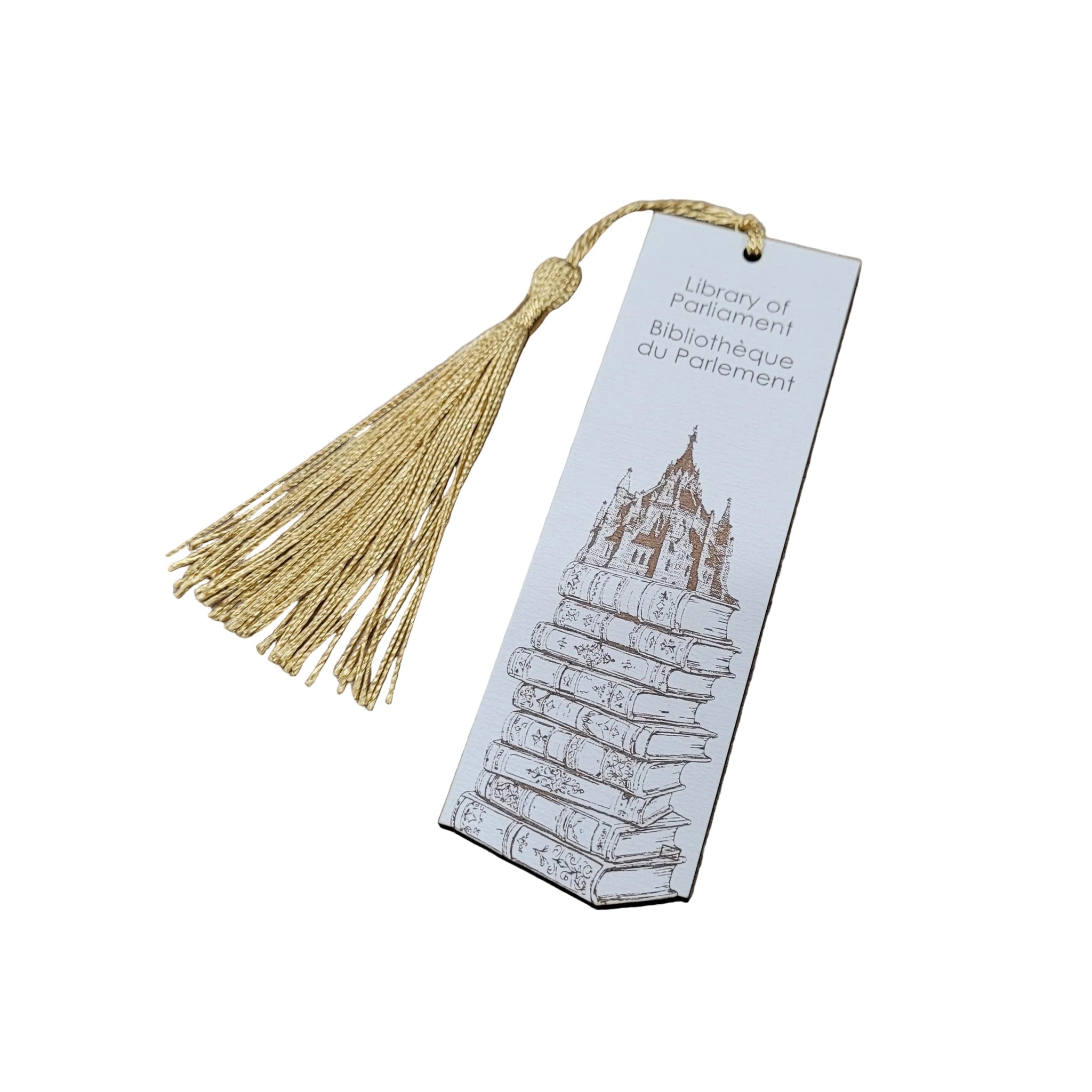 Hand-made from wooden material, our classic bookmark is part of the items created to celebrate the 150th anniversary of the inauguration of the Library of Parliament building.